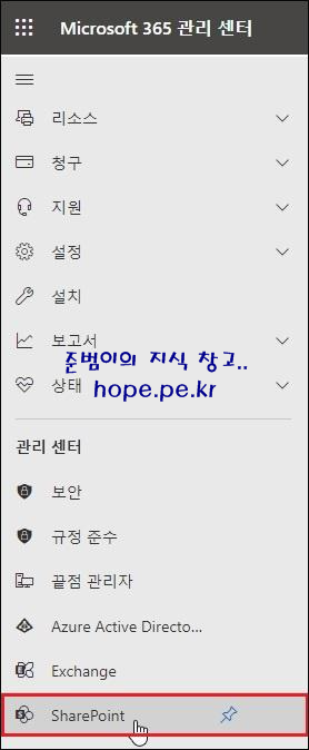 cf) 혹시 TenantName을 모르는 경우에는, Microsoft 365 관리 센터 접속후 SharePoint 관리 센터에 접속 합니다.
