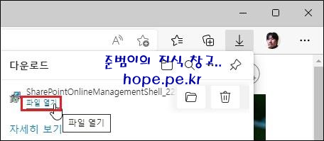 다운로드 받은 SharePointOnlineManagementShell 설치 파일에서 '파일 열기' 를 클릭 합니다.