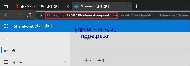 cf) 혹시 TenantName을 모르는 경우에는, Microsoft 365 관리 센터 접속후 SharePoint 관리 센터에 접속 합니다.