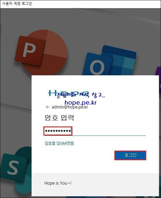 암호 입력 화면에서, '암호' 입력후 '로그인' 을 클릭 합니다.