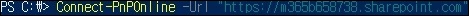 ex) Connect-PnPOnline -Url "https://m365b658738.sharepoint.com"