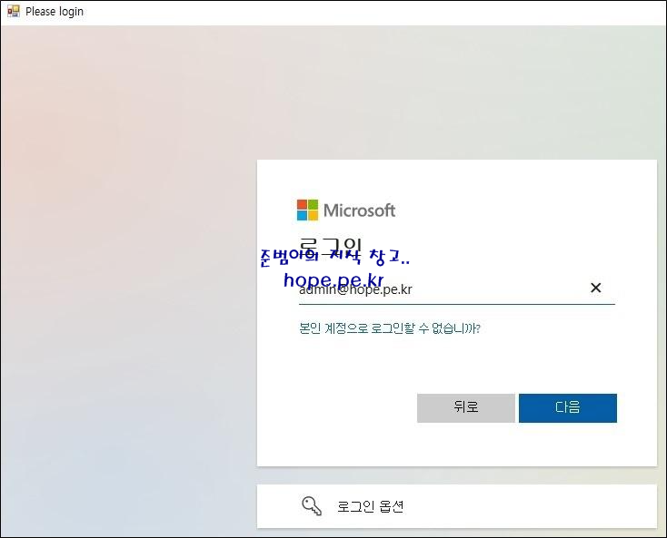 Enter your credentials 창에서, '전역 관리자 계정 정보' 입력후 '확인' 을 클릭 합니다.