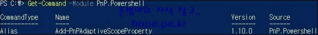 다음 cmdlet을 실행하여, PnP 모듈의 정상 설치를 확인해봅니다.