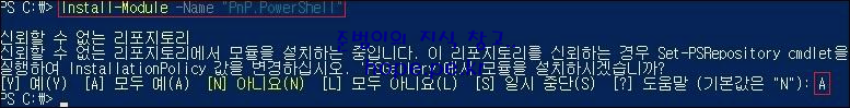 다음 cmdlet을 실행하여, PnP PowerShell 모듈을 설치 합니다.