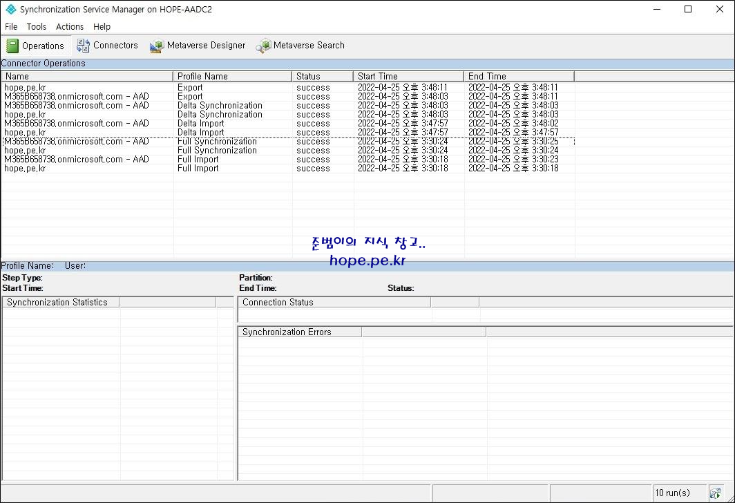 TO-BE Azure AD Connect 서버에서, 초기 전체 동기화가 진행된 것을 확인 할 수 있습니다.