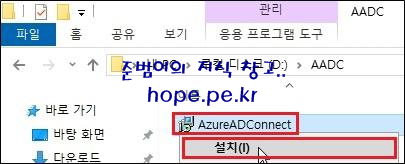 다운로드 받은 최신 버전의 ‘AzrueADCoonect 설치 파일’ 에서 우클릭후 ‘설치’ 를 클릭 합니다.