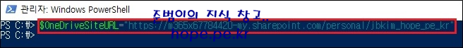 ex) $OneDriveSiteURL="https://m365x67784420-my.sharepoint.com/personal/jbkim_hope_pe_kr"