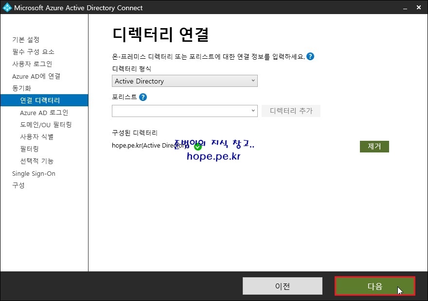 구성된 디렉터리에 도메인이 정상 확인되면 '다음' 을 클릭 합니다.