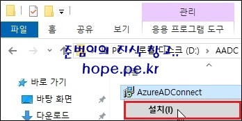다운로드 받은 Azure AD Connect 설치 파일에서, 우클릭후 '설치' 를 클릭 합니다.