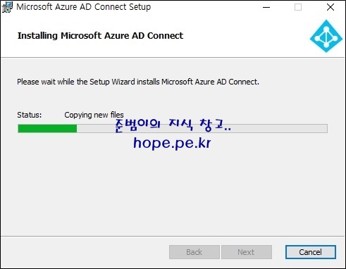 Microsoft Azure AD Connect Setup 창이 발생하며, 빠르게 사라집니다.