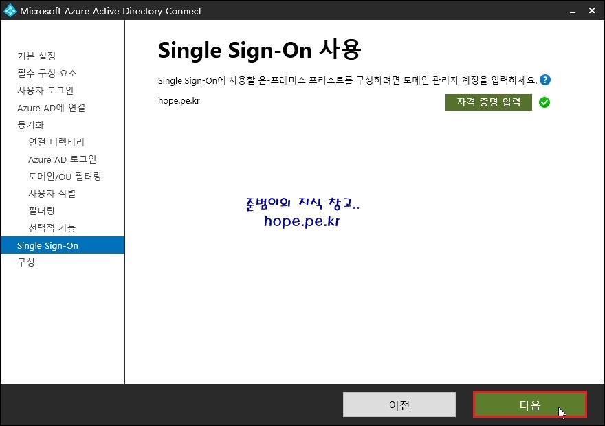'자격 증명 입력'이 정상 확인됨을 확인후 '다음' 을 클릭 합니다.