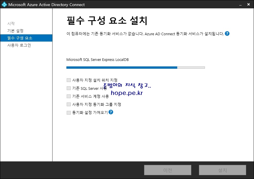 Azure Active Directory Connect 설치 사용자 지정 - Microsoft Entra