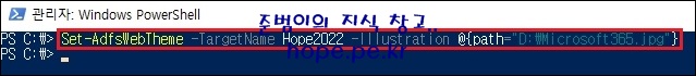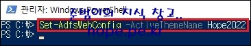 다음 cmdlet을 실행하여 Hope2022 테마를 현재 ADFS 로그인 페이지에 적용 합니다.