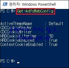 다음 cmdlet을 실행하여, Centered UI가 적용되어 있는 Windows Server 2019 용 'AdfsWebTheme' 이름을 확인 합니다.