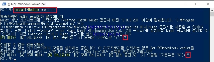 다음 cmdlet 명령어를 실행 합니다.