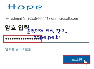 암호 입력 화면에서, '암호' 입력 후 '로그인' 을 클릭 합니다.
