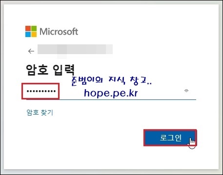 암호 입력 화면에서, '암호' 입력후 '로그인' 을 클릭 합니다.