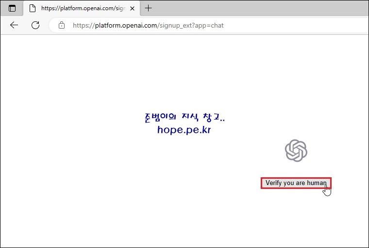 인간임을 검증하기 위해, 'Verify you are human' 을 클릭 합니다.