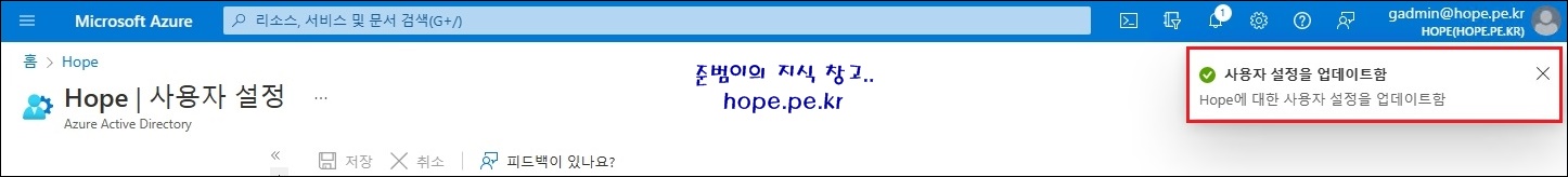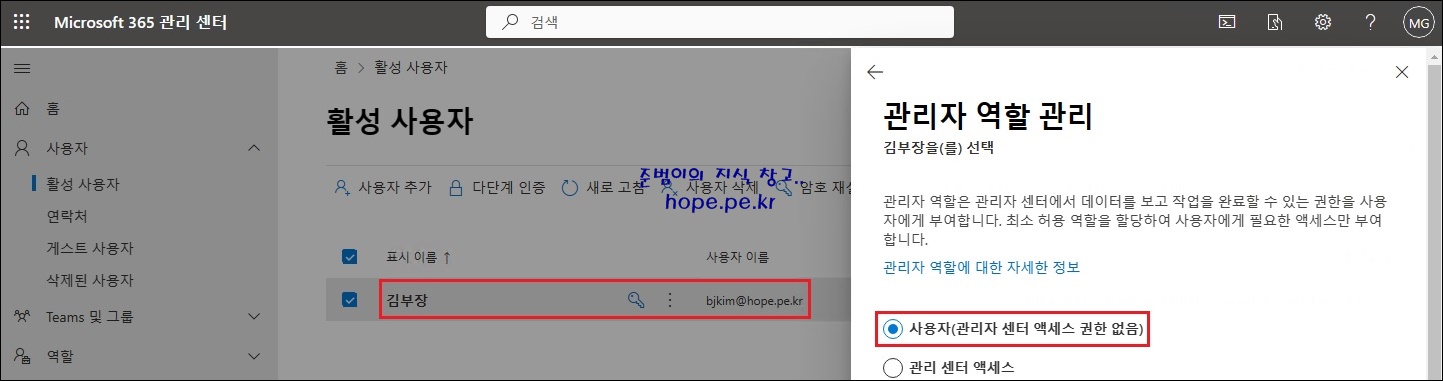 김부장 계정(bjkim@hope.pe.kr) 은 일반 '사용자' 계정 입니다.