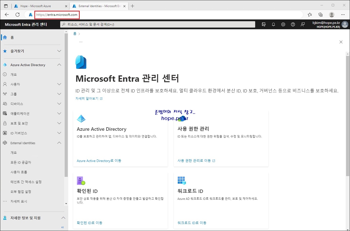 이제 일반 사용자 계정으로, 'Azure Active Directory 관리 사이트' 및 'Microsoft Entra 관리 센터' 에 접속을 해보겠습니다.