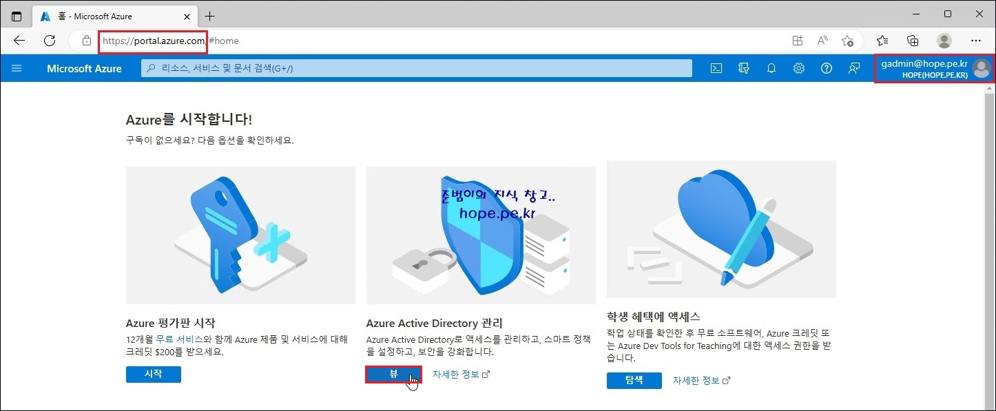 김부장 계정으로, 'Azure Portal 사이트(portal.azure.com)' 에 접속을 해보겠습니다.