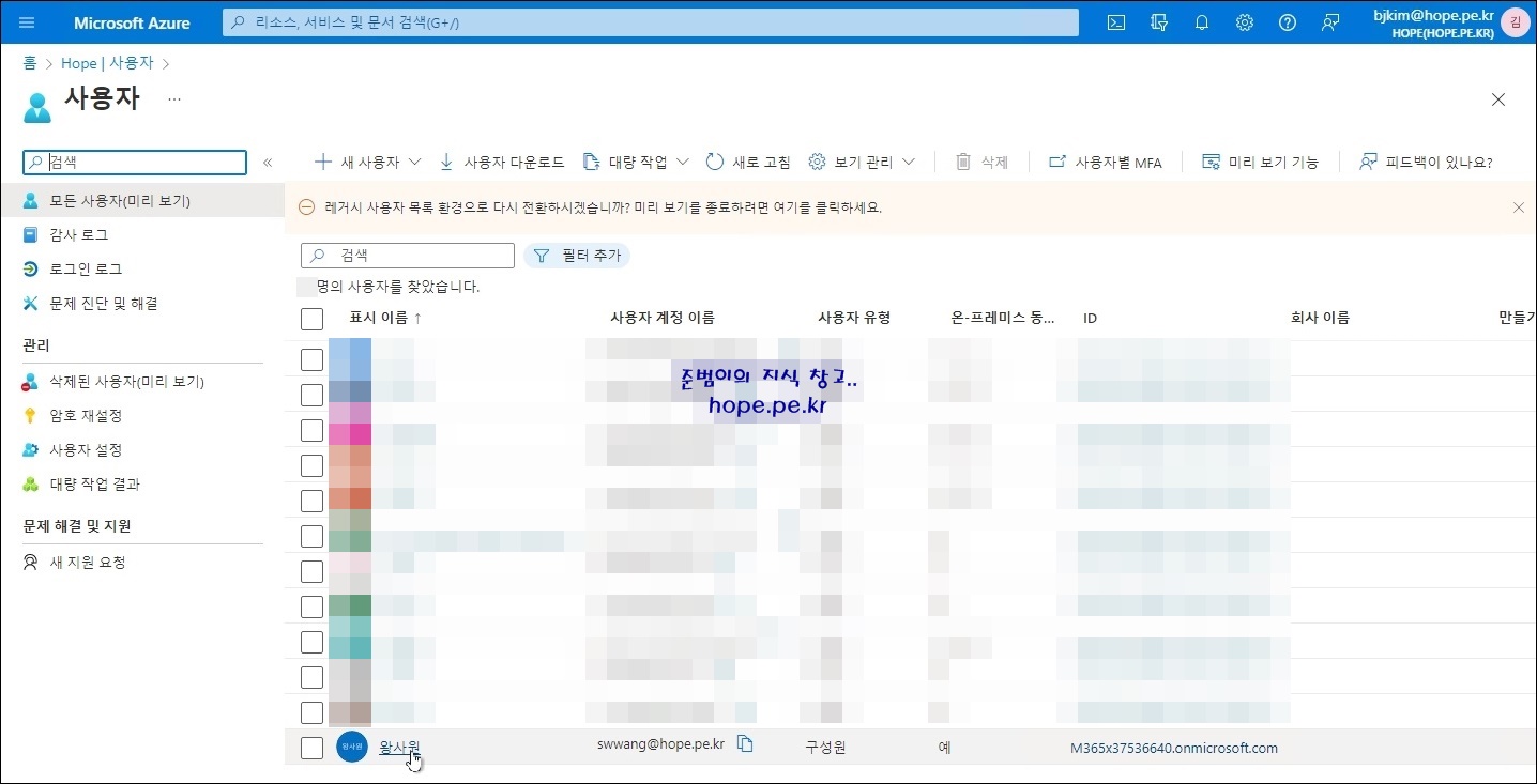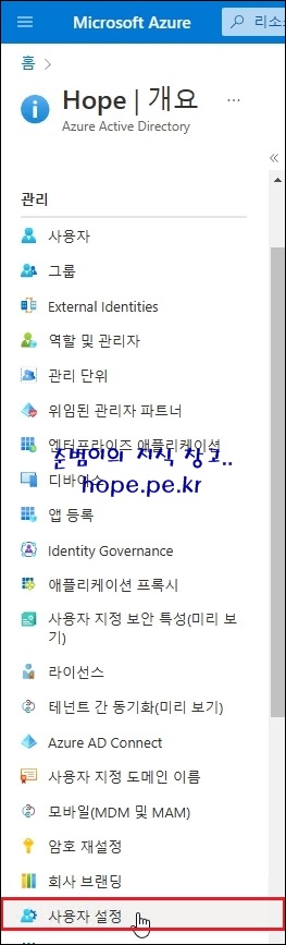일반 사용자 계정인데, Azure Active Directory 관리 사이트에 접속이 됩니다;; 쿨럭;; '사용자' 를 클릭해보겠습니다.