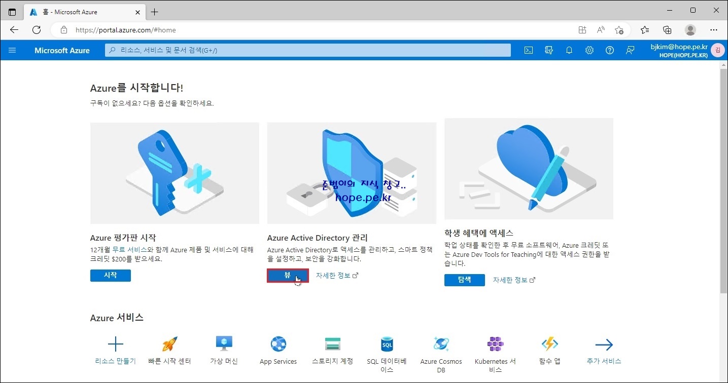 김부장 계정으로, 'Azure Portal 사이트(portal.azure.com)' 에 접속을 해보겠습니다.