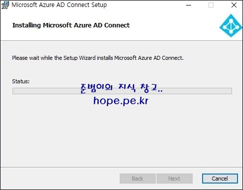 최초 Azure AD Connect 설치시와 동일하게 Microsoft Azure AD Connect Setup 창이 발생했다가 사라집니다.
