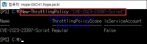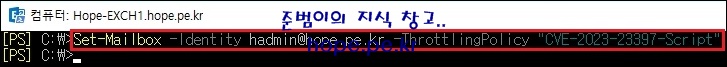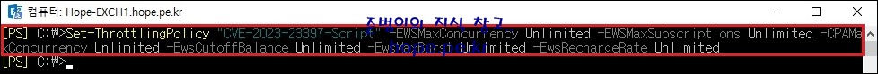 Set-Mailbox -Identity 'Exchange 관리자 메일 주소' -ThrottlingPolicy "CVE-2023-23397-Script"