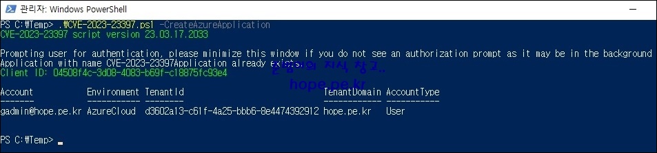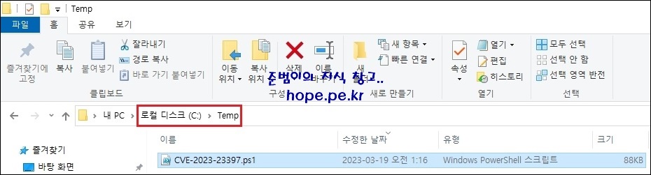 1) C:\Temp폴더에 다운로드 받은 CVE-2023-23397.ps1 스크립트 파일 저장