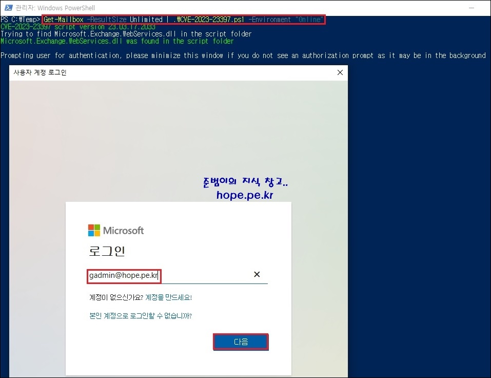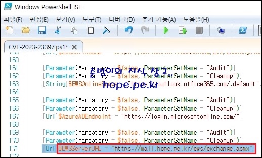 두번째로, On-Premise Exchange Server에서 CVE-2023-23397 script 파일을 사용하는 방법에 대해 설명 드리겠습니다.