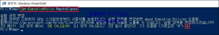 cf) 이미 PowerShell 실행 정책을 RemoteSigned로 설정한 경우에는 다음 단계로 건너뜁니다.