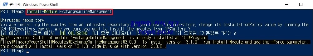 3) Azure AD & Exchange Online 모듈 설치/가져오기/업데이트