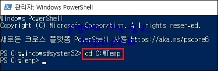 PowerShell을 관리자 권한으로 실행 후, 'C:\Temp' 경로로 이동 합니다.