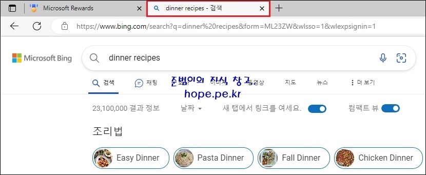 '저녁 식사 조리법'을 클릭해보겠습니다.