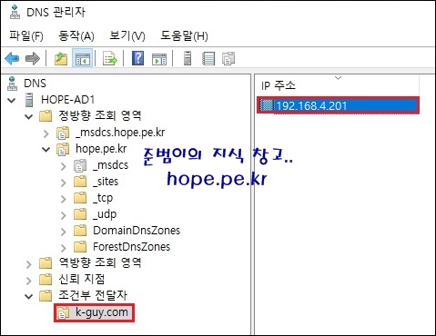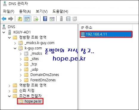 트러스트를 구성할 도메인의 DNS 관리자 콘솔에서도 동일한 과정으로 조건부 전달자를 추가 합니다.