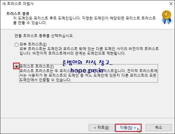 트러스트 종류 화면에서, '포리스트 트러스트' 선택 후 '다음' 을 클릭 합니다.