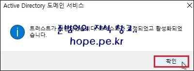 도메인 변경 창에서, 트러스트 도메인 이름 입력 후 '확인' 을 클릭 합니다.