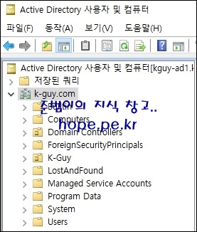 도메인 트러스트 구성이 완료되었으면, 'Active Directory 사용자 및 컴퓨터' 콘솔에서 트러스트를 구성한 도메인으로 정상적으로 도메인 변경이 진행되는지 확인하겠습니다.