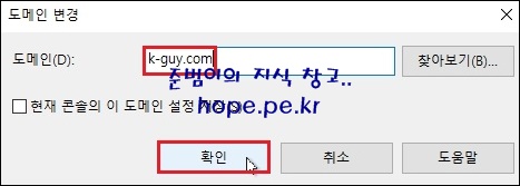 도메인 변경 창에서, 트러스트 도메인 이름 입력 후 '확인' 을 클릭 합니다.