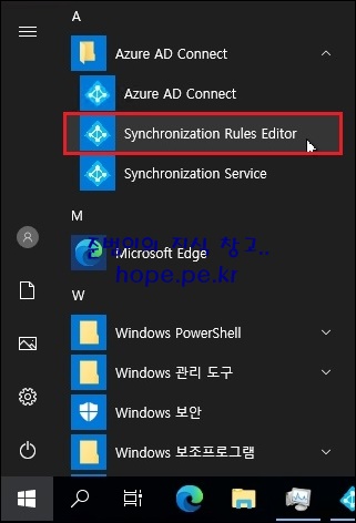 '시작 > Synchronization Rules Editor' 를 클릭 합니다.