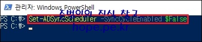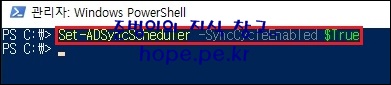 마지막으로 PowerShell에서 다음 cmdlet 명령어를 실행하여 동기화 스케줄링을 시작 합니다.