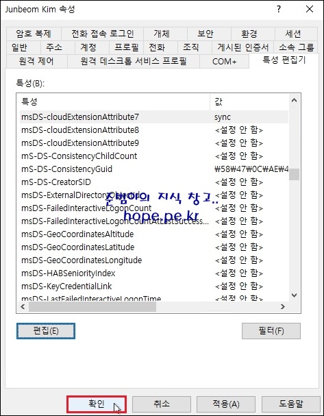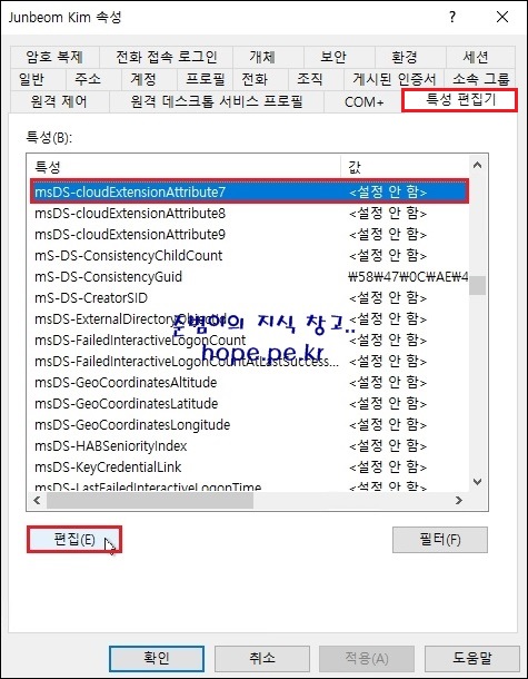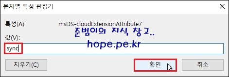 cf) 저는 'msDS-cloudExtensionAttribute7' 특성을 사용 했습니다.