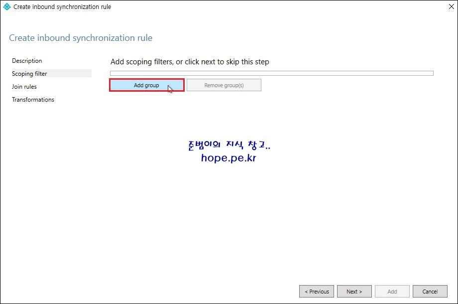Scoping filter 메뉴에서, 'Add group' 를 클릭 합니다.