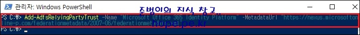 다음 cmdlet 명령어를 실행하여, 신뢰 당사자 트러스트에 Microsoft 365를 수동으로 추가 합니다.