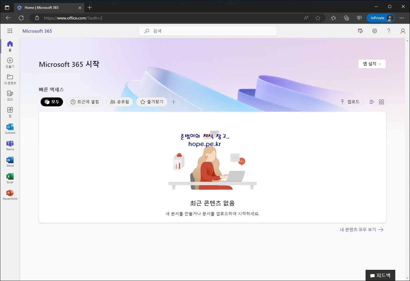 Microsoft 365에 정상적으로 로그인됨을 확인 합니다.