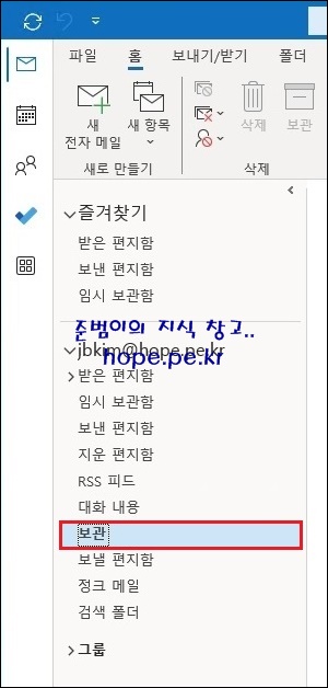 cf1) outlook.office.com 에서도 '보관' 폴더를 확인할 수 있습니다.