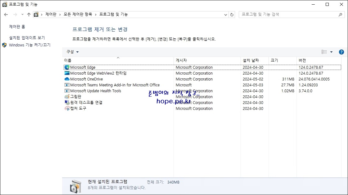 참고로 New Teams 설치 내역은 ' 제어판 > 프로그램 및 기능' 에서 설치된 프로그램 목록에서 찾을 수 없고