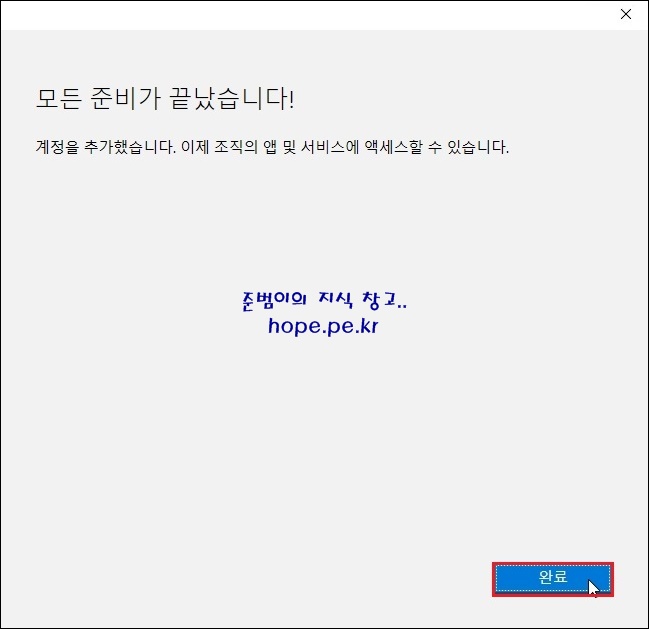 모든 준비가 끝났습니다! 화면에서, '완료' 를 클릭 합니다.