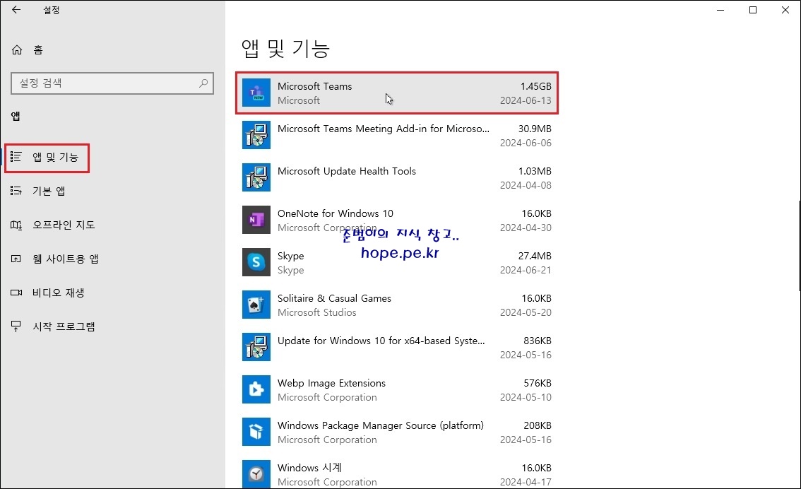 'Windows 설정 (Windows Key + I Key) > 앱 > 앱 및 기능' 목록에서 확인 가능 합니다.